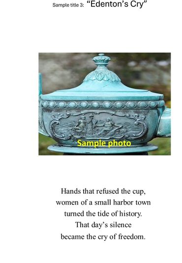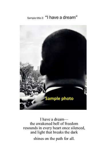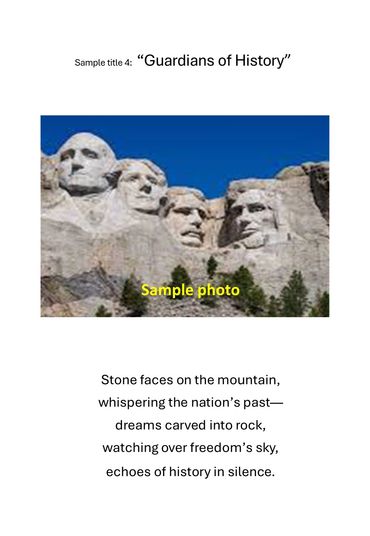 Include the title of your work, your name, the photograph, and your poem written below the image.